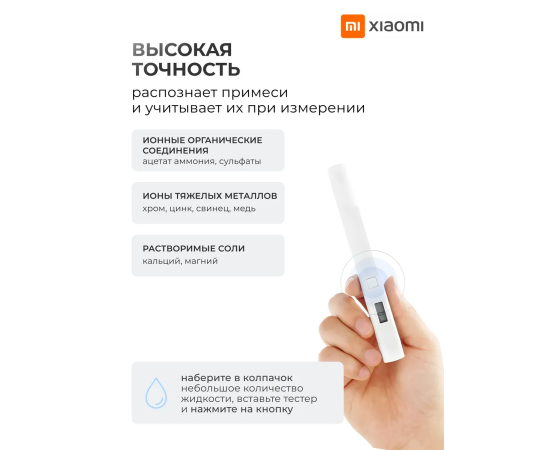 Тестер воды Xiaomi Mi TDS Pen Water Quality Tester (XMTDS01YM) White