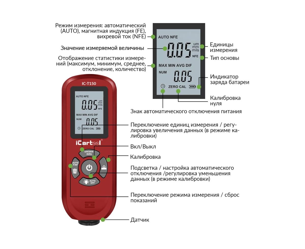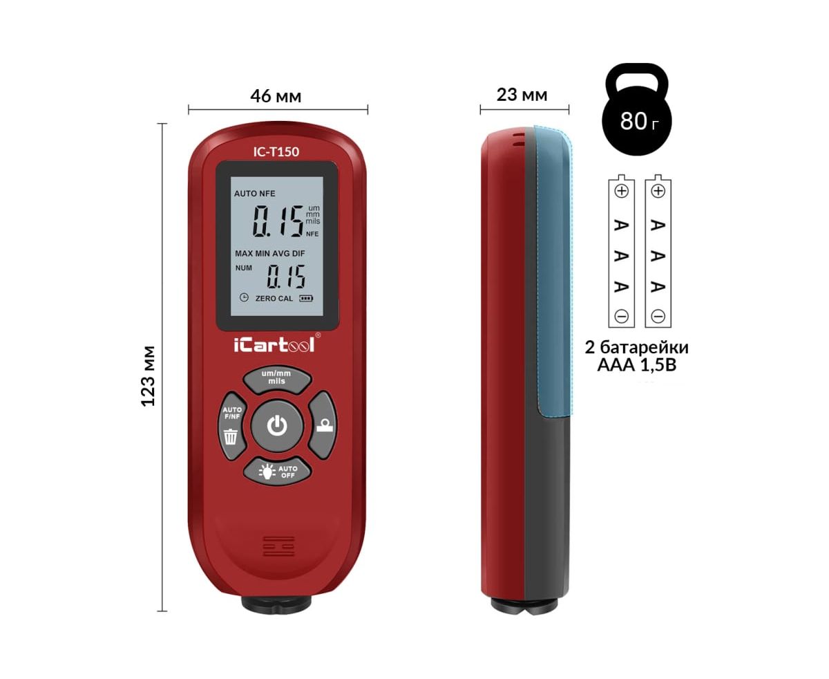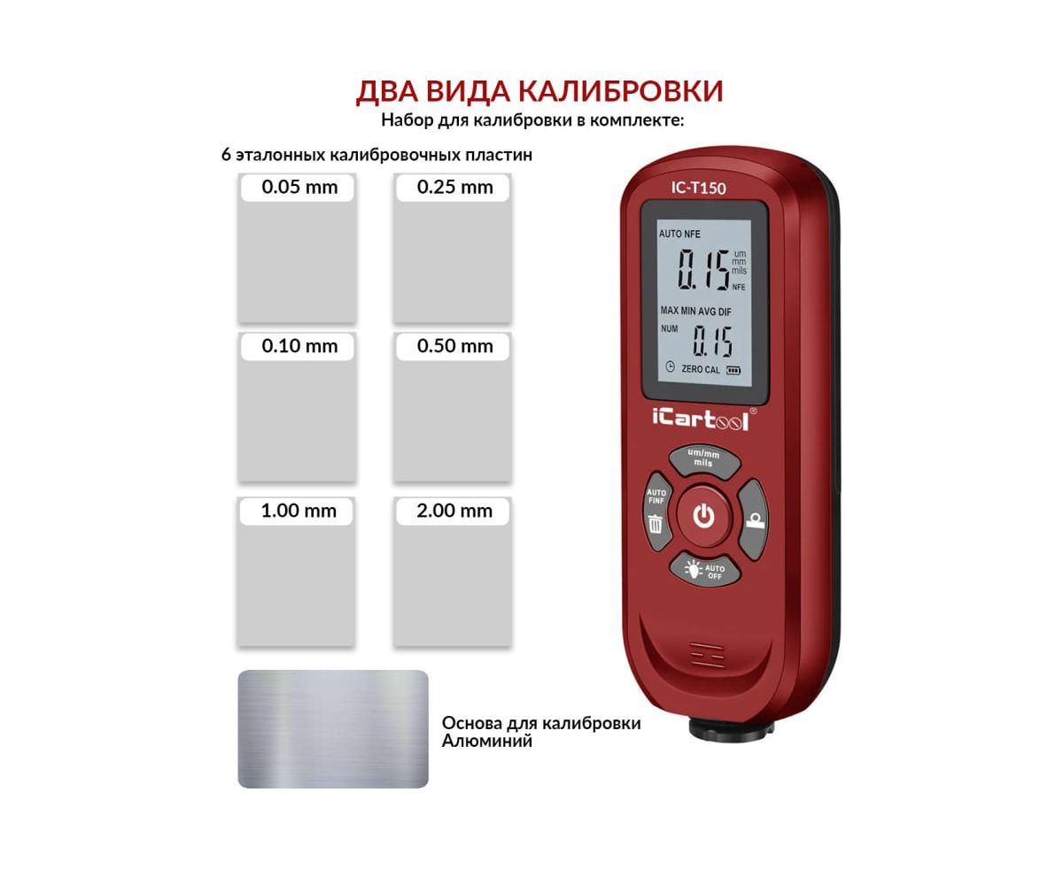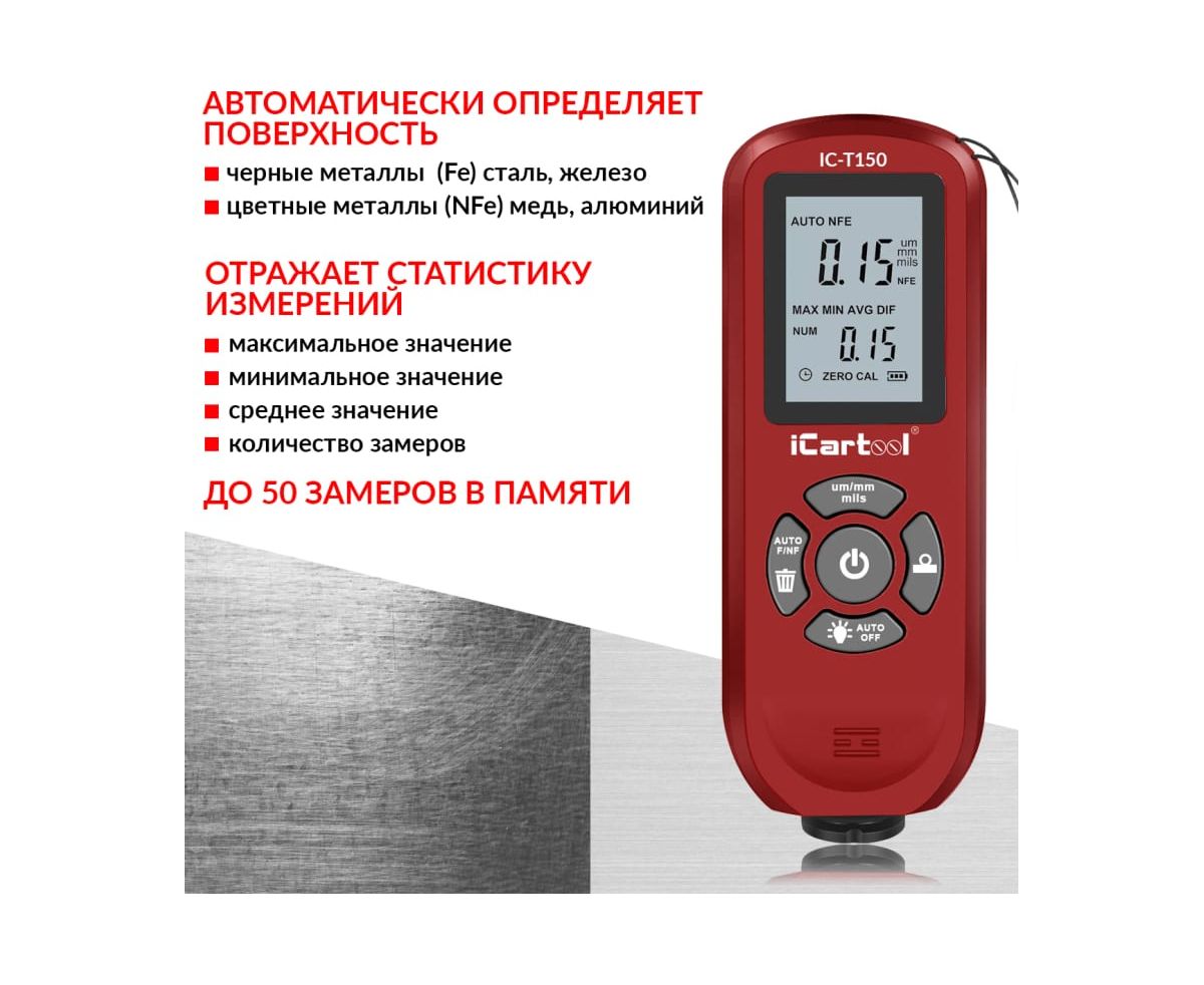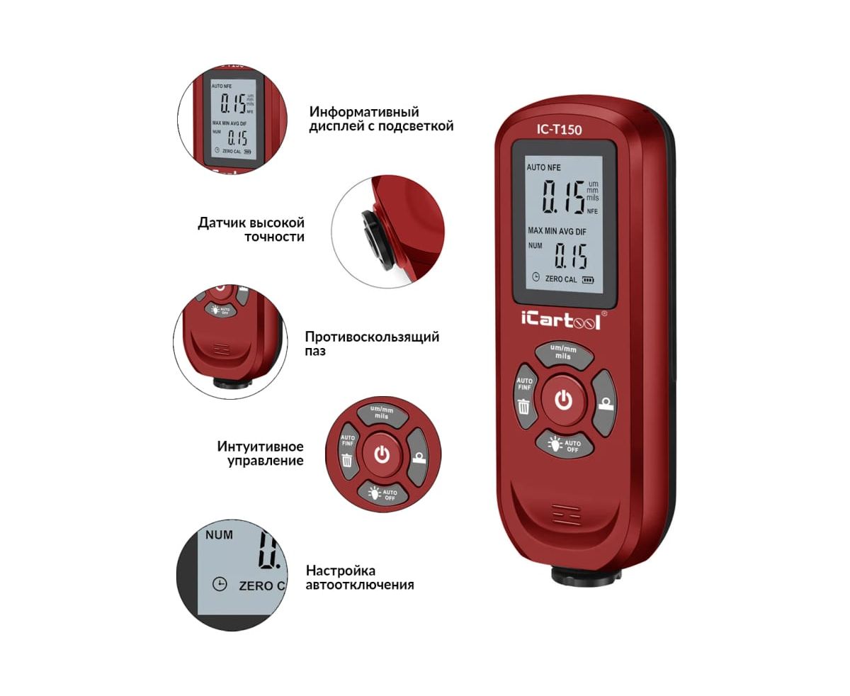 Толщиномер лакокрасочных покрытий iCarTool IC-T150 Fe/NFe