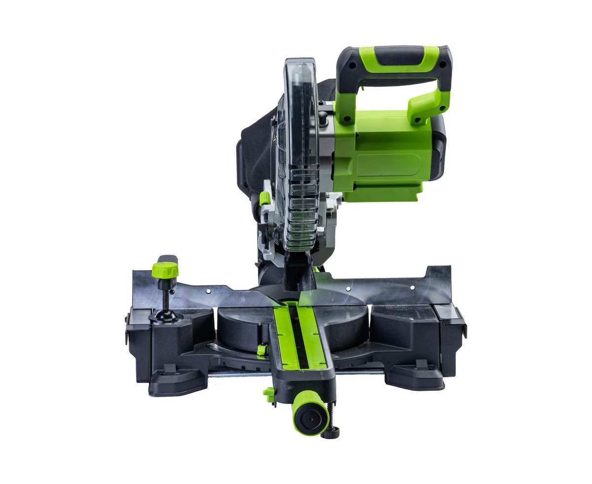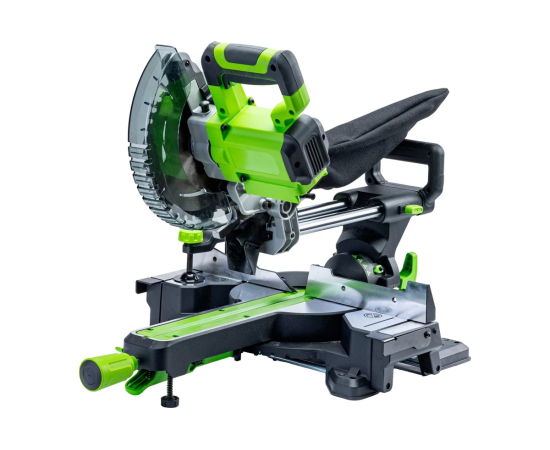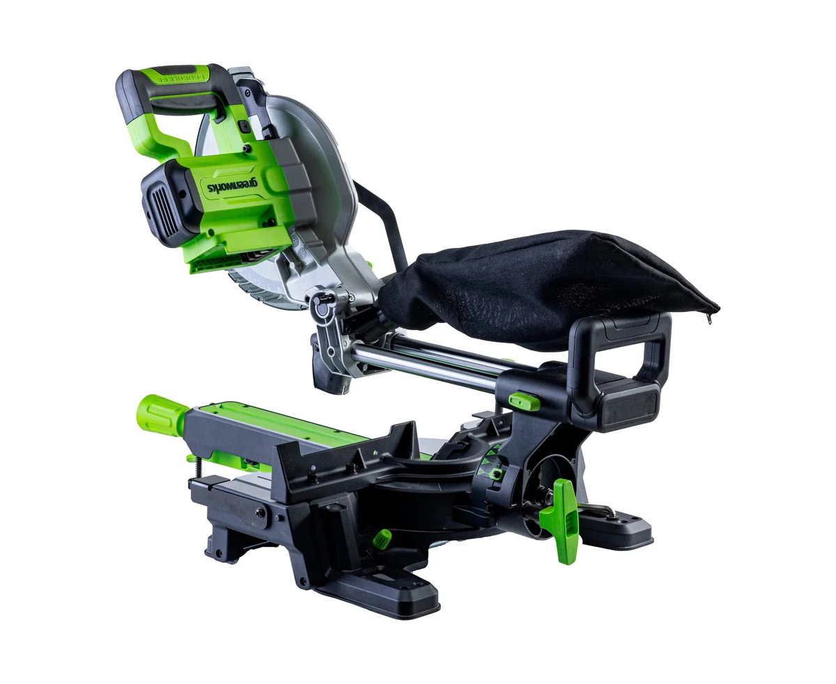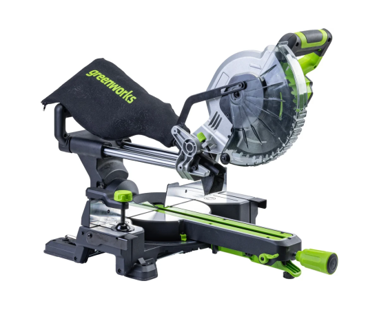 Мобильная производительная аккумуляторная торцовочная пила Greenworks GD24MS216 с функцией протяжки – максимально удобная в эксплуатации.