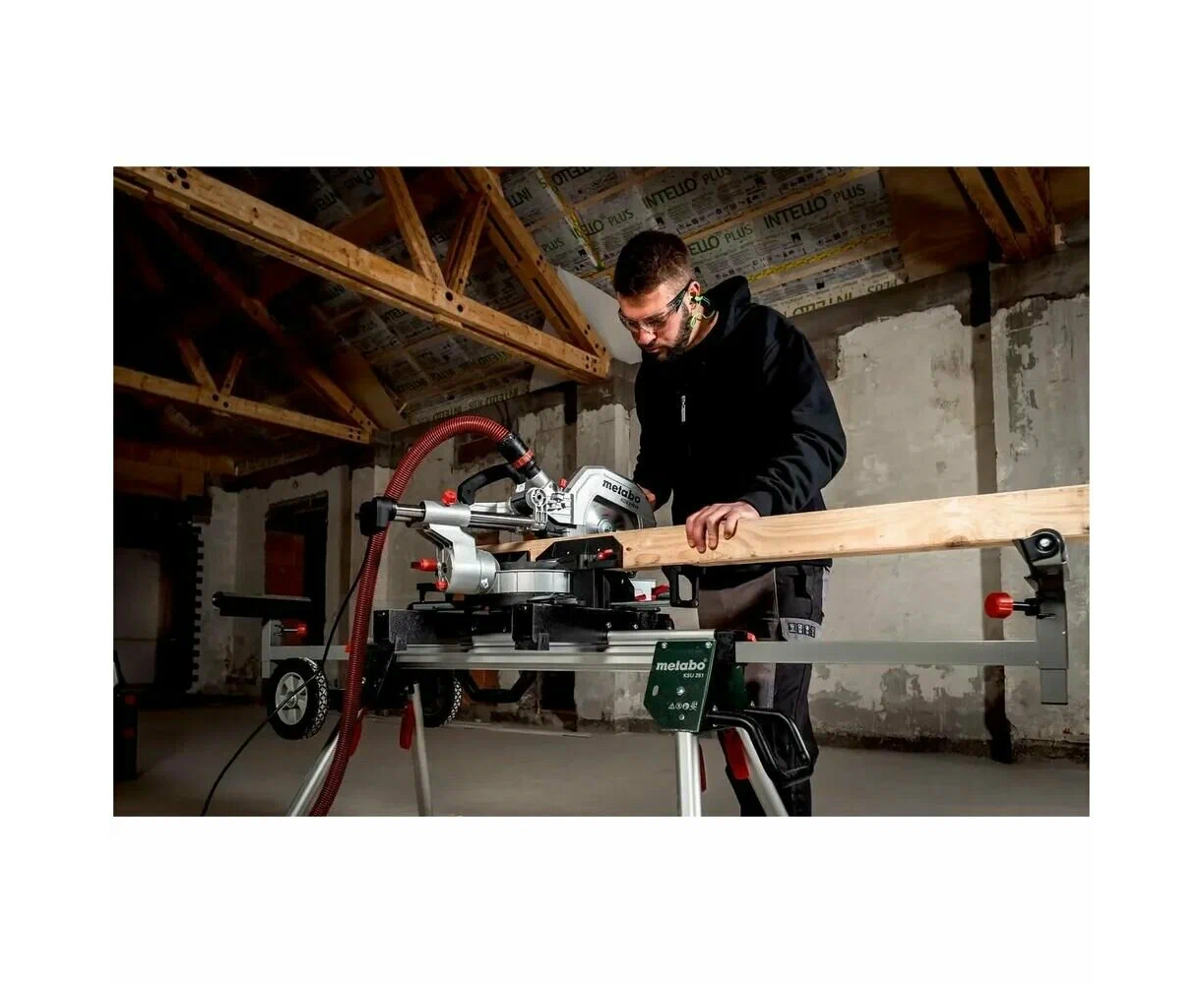 -2 встроенных расширения стола -торцовочный упор -зажим для материала -инструмент для смены пильного диска -намотка кабеля -мешок для сбора опилок