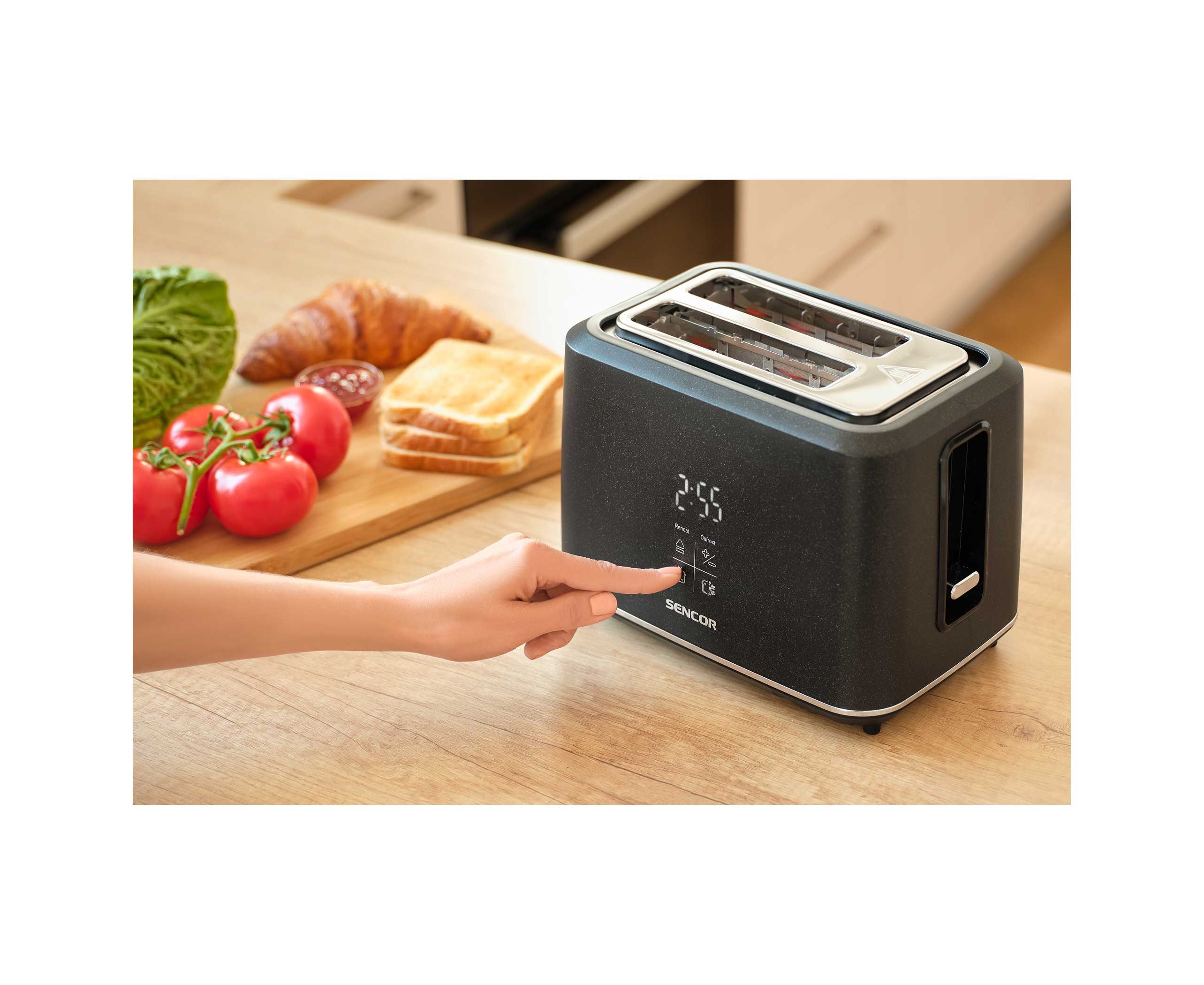автоматическое поднятие тостов, автоматическое центрирование тостов, плавная регулировка температуры