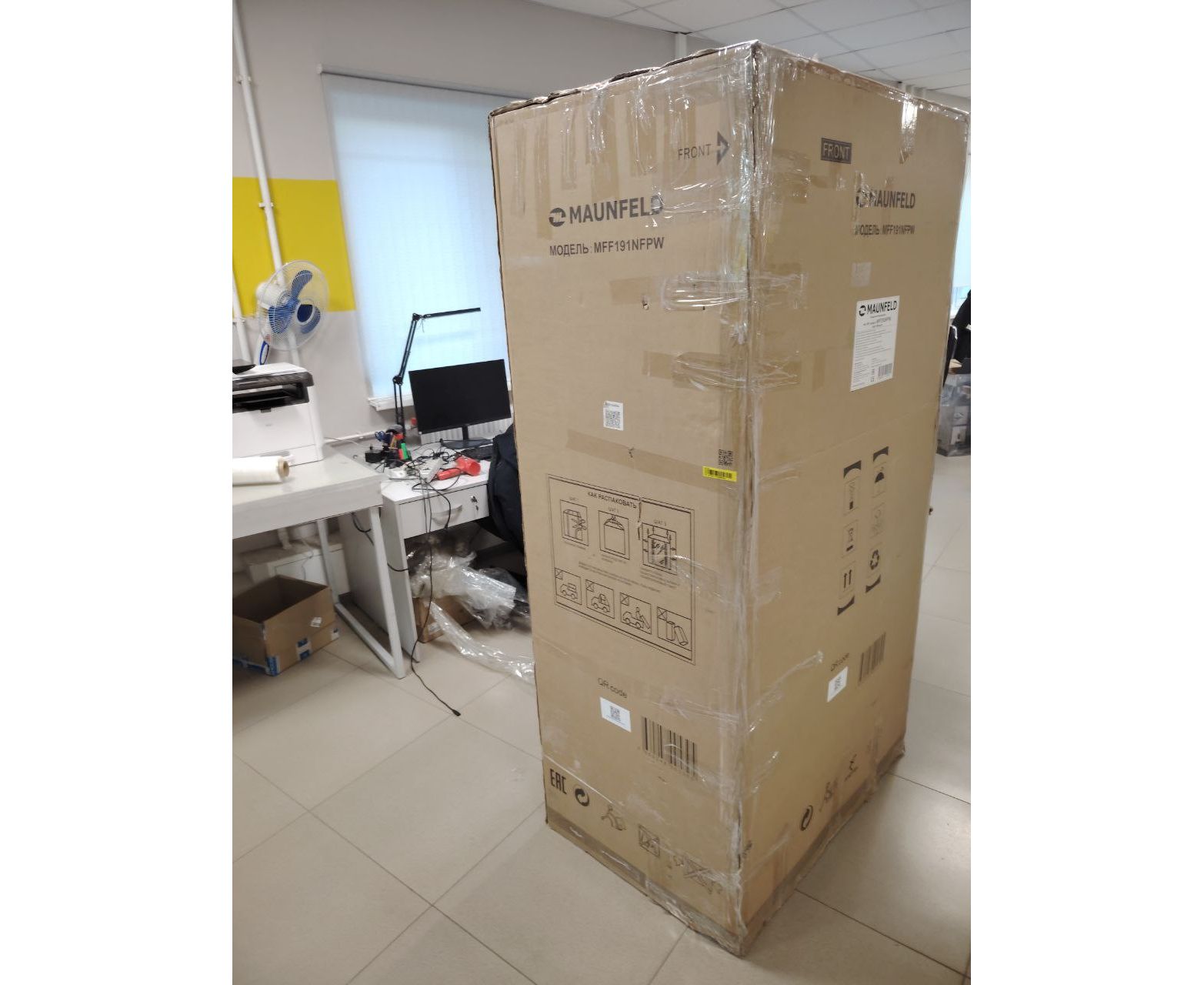 УЦ Холодильник MAUNFELD MFF191NFPW (плохая упаковка, смещение дверей, мал. царапина сбоку, замятие сзади внизу)