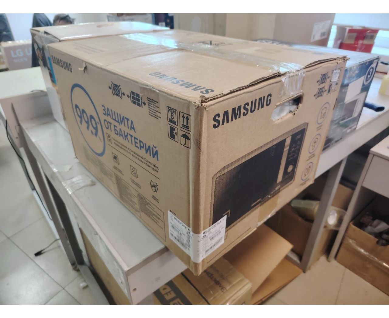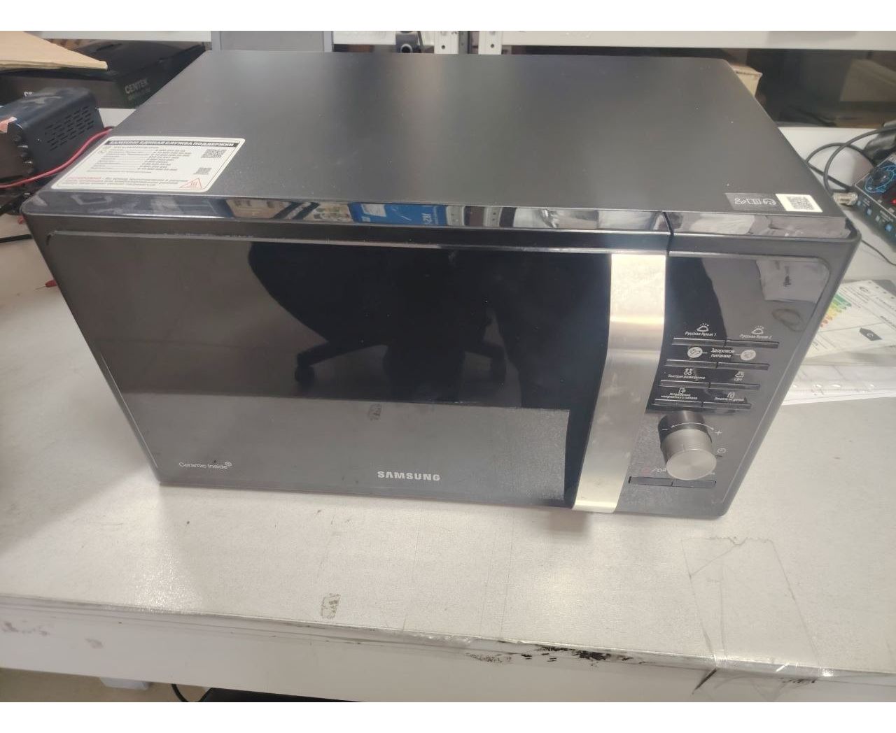 УЦ Микроволновая печь Samsung MS23F302TAK 23л. 800Вт черный (плохая упаковка, бу, нет документации, замена модуля клавиатуры)