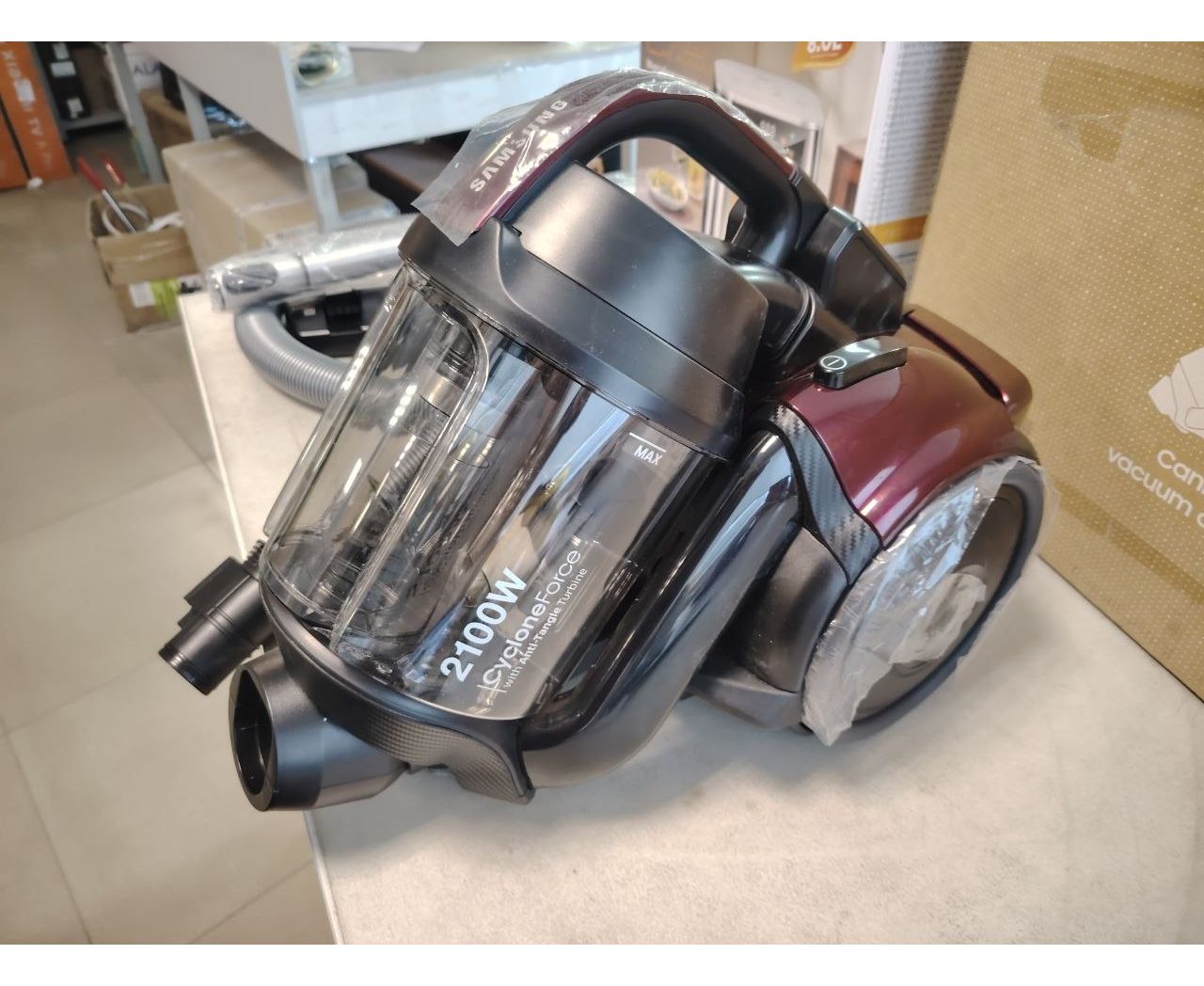 УЦ Пылесос Samsung VC21K5150HP 2100Вт тёмно-красный (плохая упаковка, бу, отколота часть паза для колбы)