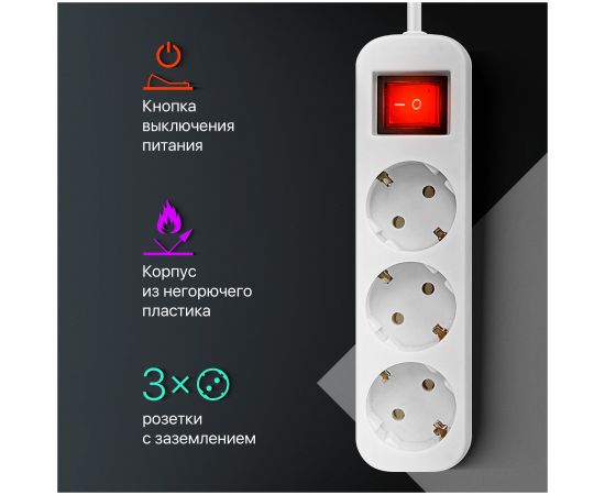 Удлинитель DEFENDER S350 (99235) 5.0 м, 3 розетки
