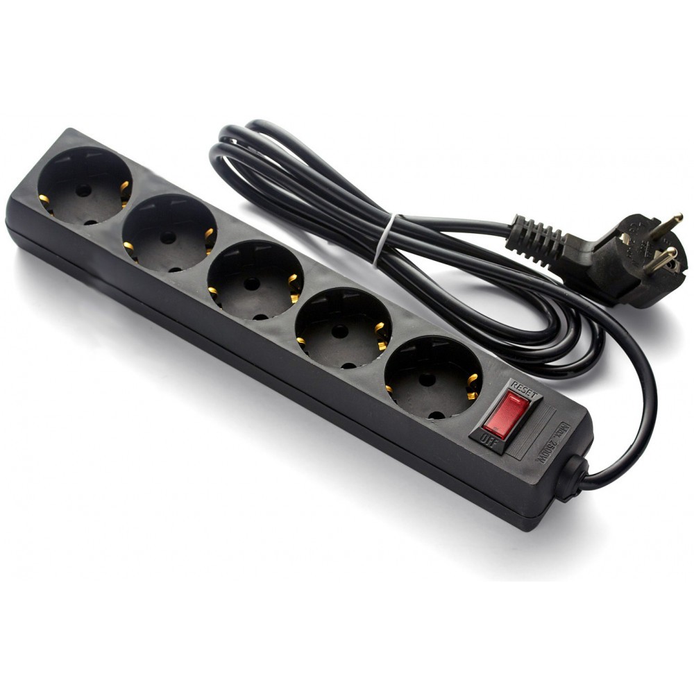 сетевой удлинитель, 5 розеток, 1.8 м, чёрный