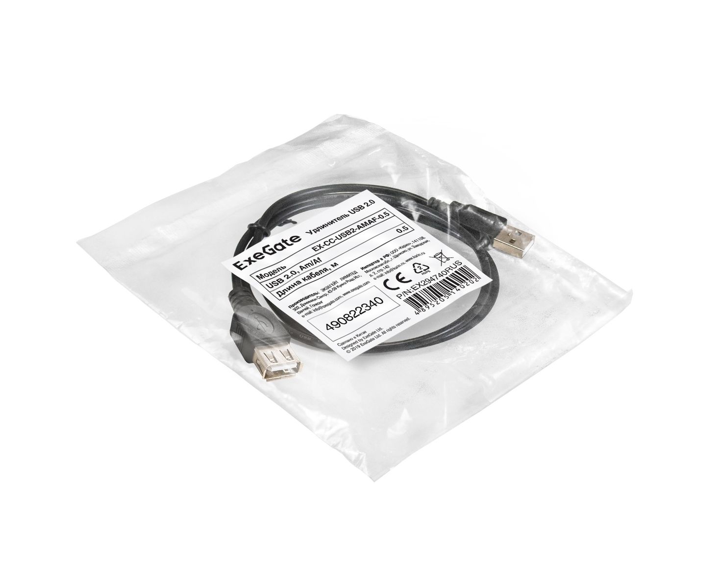 Удлинитель ExeGate EX-CC-USB2-AMAF-0.5 EX294740RUS USB 2.0 Am/Af 0,5м