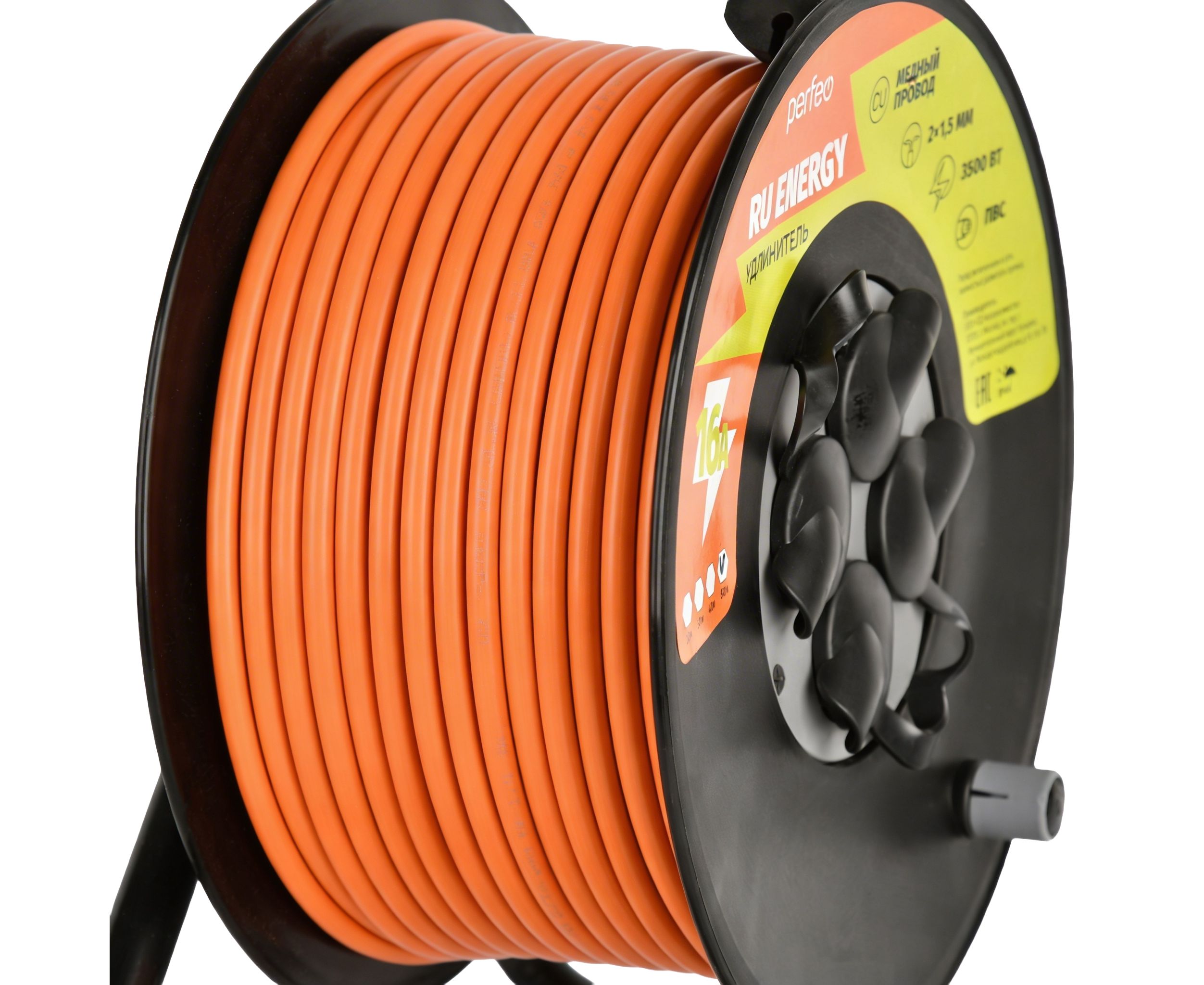 Удлинитель на катушке без заземления Perfeo "RU ENERGY" 40м 4гн 16А ПВС 2х1,5 IP44, (Арт. PF_E2532)