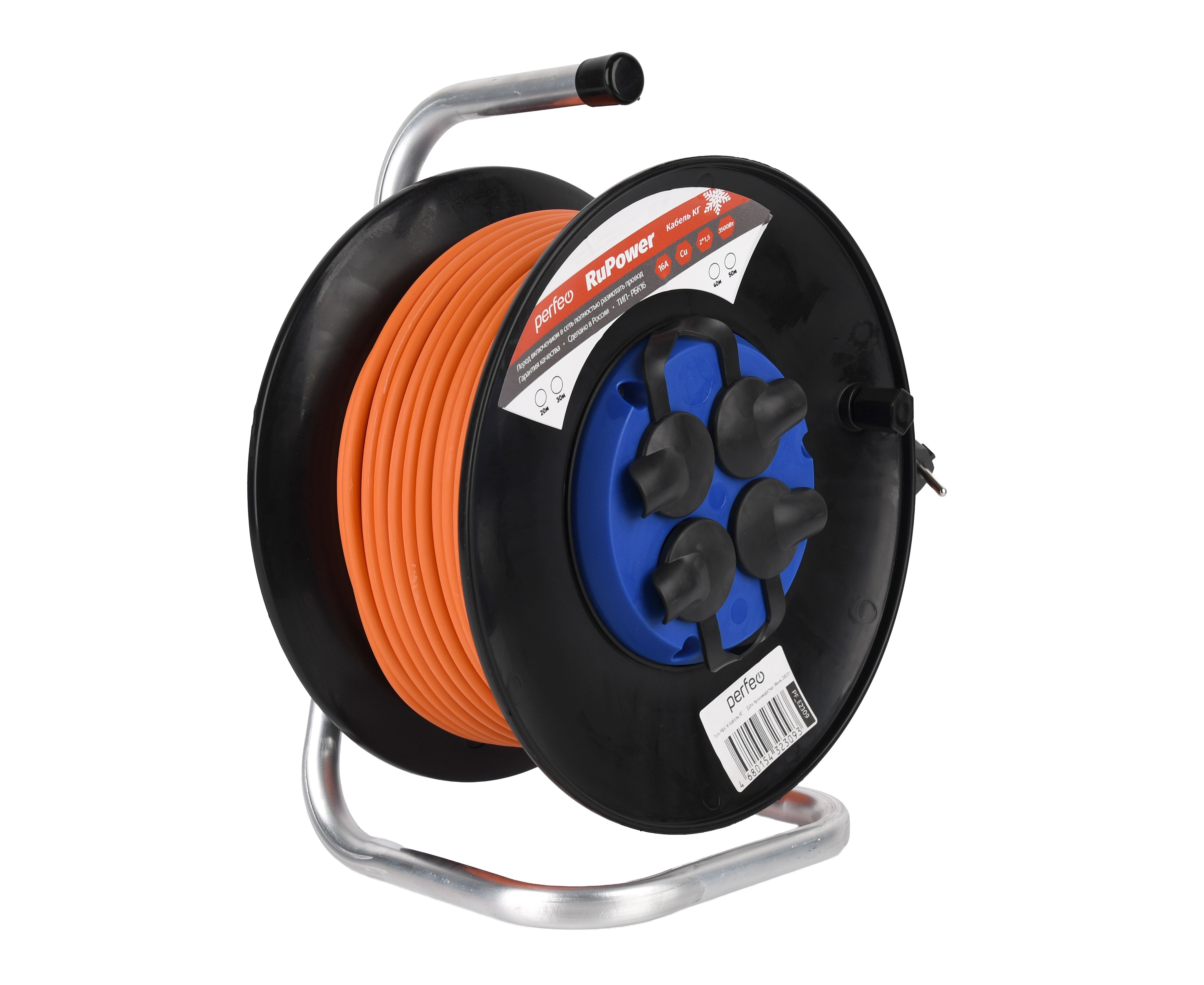 Удлинитель на катушке без заземления Perfeo "RU POWER" 30м 4гн 16А КГ 2х1,5 IP44 (РБК16) оранж