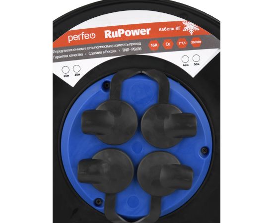 Удлинители на катушках Perfeo «RuPower» - спасение в ситуациях, когда стандартной длины шнура питания становится недостаточно. Они идеально подойдут для подключения ремонтного, строительного и другого оборудования. Модель имеет защиту от влаги и пыли IP44 и может эксплуатироваться в помещениях с повышенным уровнем влажности или на улице под крышей. Защита от воды и пыли: IP44. Медный провод выдерживает заявленную нагрузку. Рукоятка для переноски и металлическая подставка для удобства размещения и устойчивости. Гибки кабель КГ позволяет работать с данным удлинителем в холодное время года.
