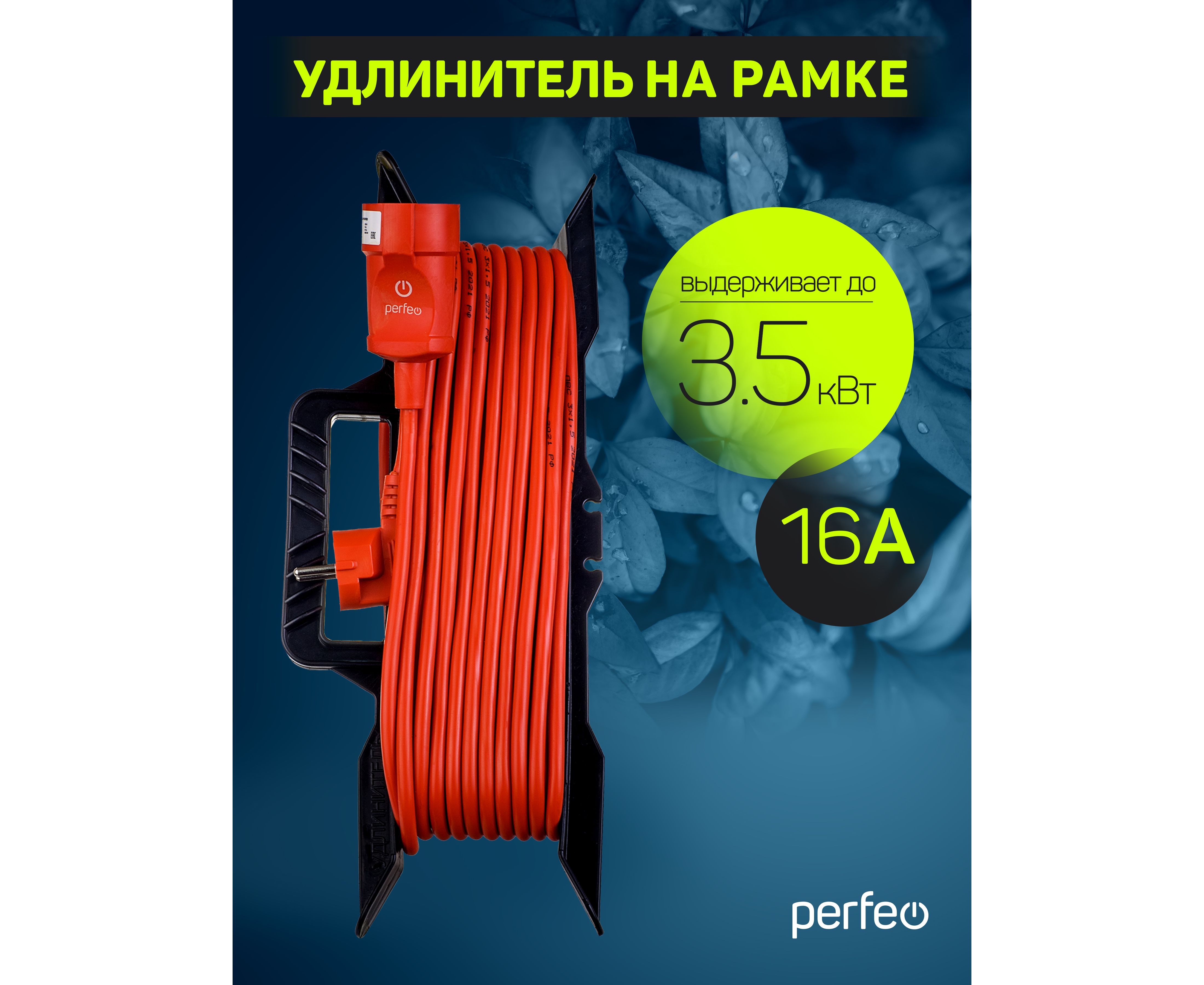 Удлинитель на рамке с заземлением Perfeo "RU POWER" 30м 1гн 16А ПВС 3х1,5 ( УХз16-101) оранжевый.