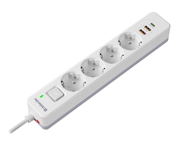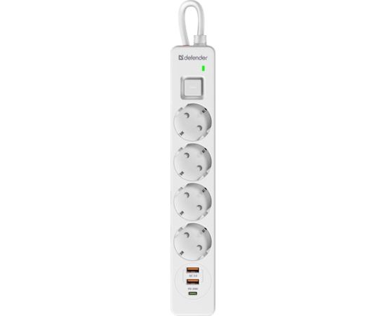 Сетевой фильтр DEFENDER с сетевым фильтром DFS 143 3 м, белый, 4розетки, USB+TypeC (99434)