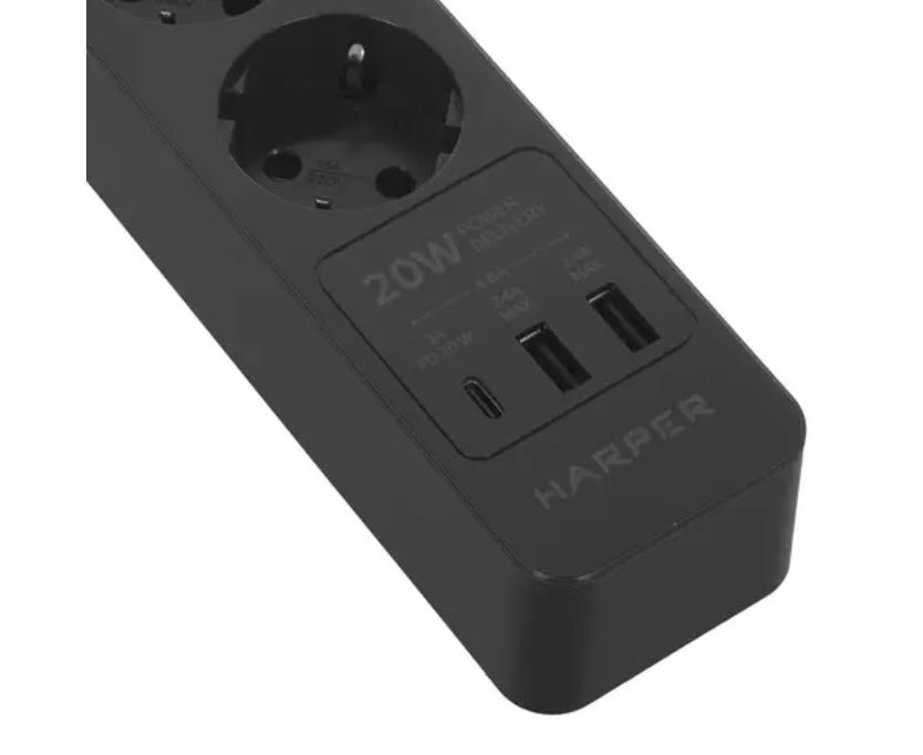 Удлинитель с USB зарядкой HARPER UCH-430 PD3.0 Black