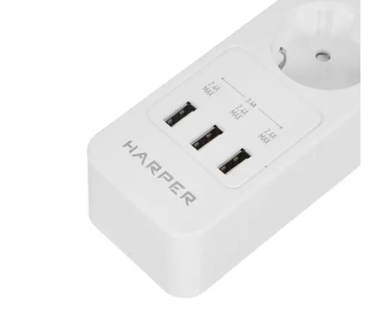 Удлинитель с USB зарядкой HARPER UCH-510 White