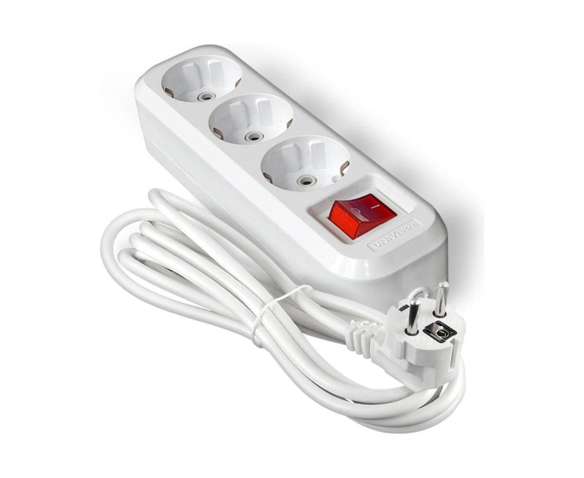 Удлинитель UNIVersal 1727 S-303а ПВС 3/1,5 3гнезда с заземлением, с выключателем, 5м, еврослот