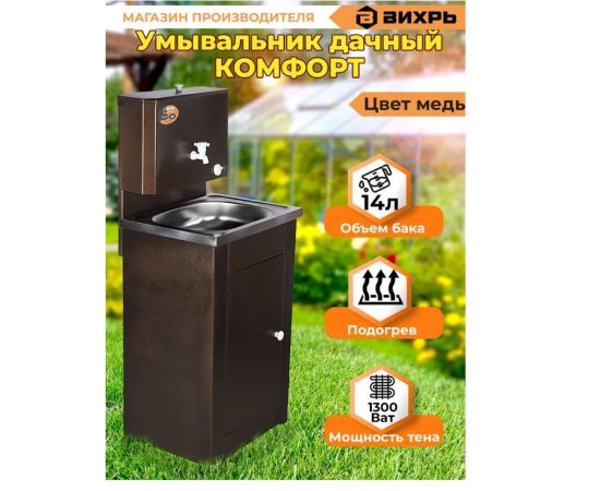 Умывальник дачный Вихрь КОМФОРТ с подогревом, нержавеющая мойка, медь