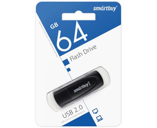 USB флэш-накопитель smartbuy 64Gb Scout, USB 2.0, пластик, черный