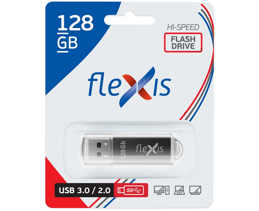 USB-флешка Flexis RB-108 3.0, 128 Гб, USB 3.1 gen.1, чёрный (FUB30128RBK-108)