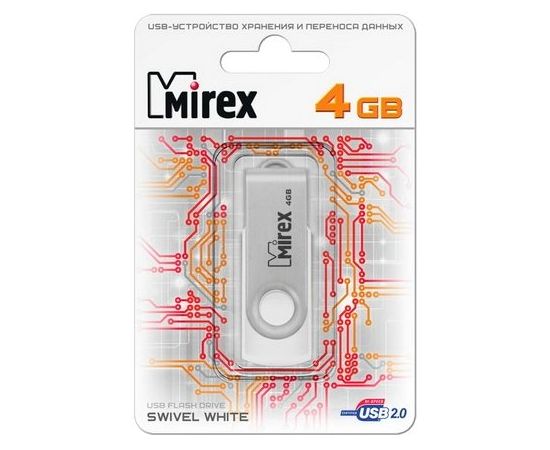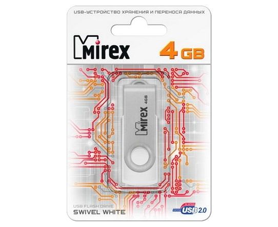 Flash Drive 4GB USB 2.0 Mirex Swivel, Белый (13600-FMUSWT04)