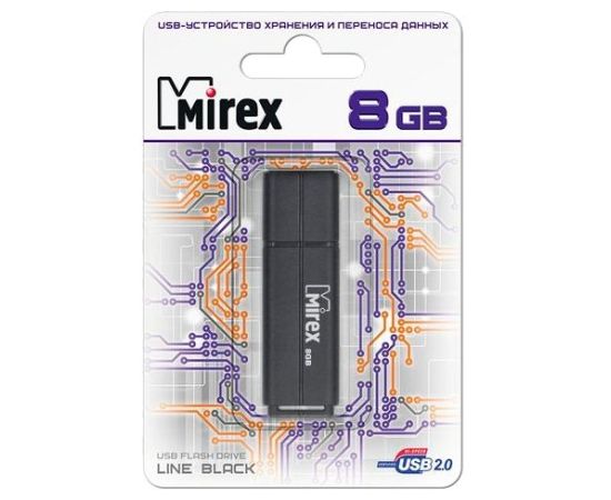 Flash Drive 8GB USB 2.0 Mirex Line, Черный (13600-FMULBK08)