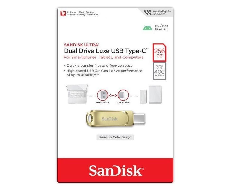 USB-флешка SanDisk SDDDC4 256Gb (SDDDC4-256G-G46GD), USB3.1 Type-C, золотая