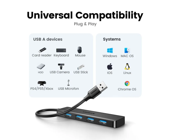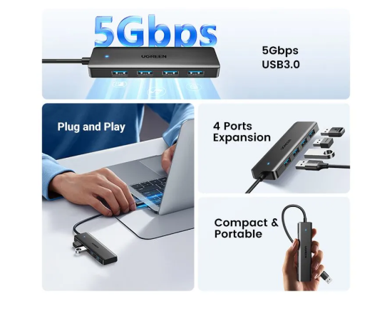 USB-Hub UGREEN CM219 25851 4-Port USB 3.0 Hub With USB-C Power Port Black