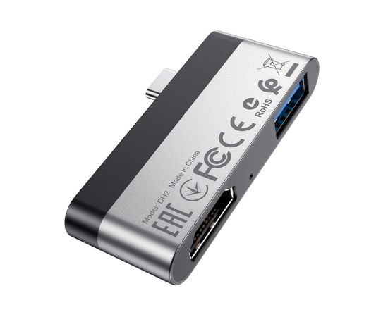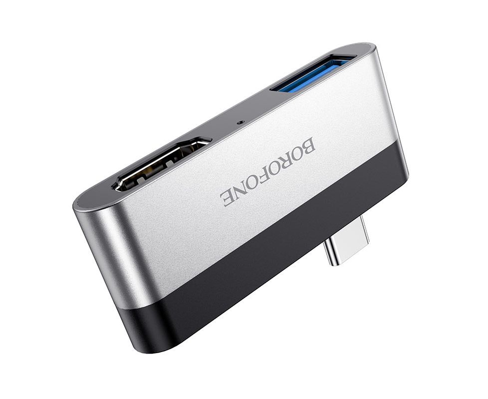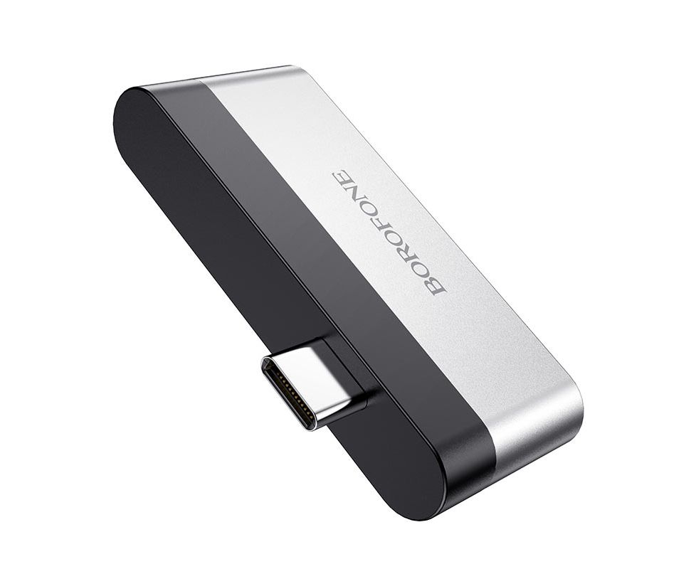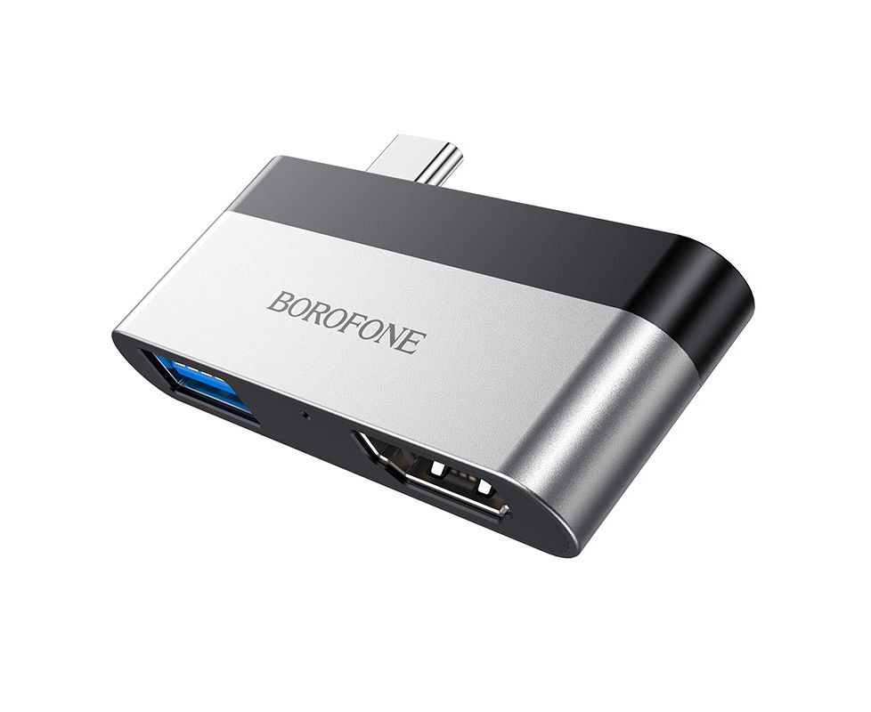 USB-концентратор Borofone DH2, алюминий, Type-C на HDMI, USB 3.0, цвет: серый(1/18/180)