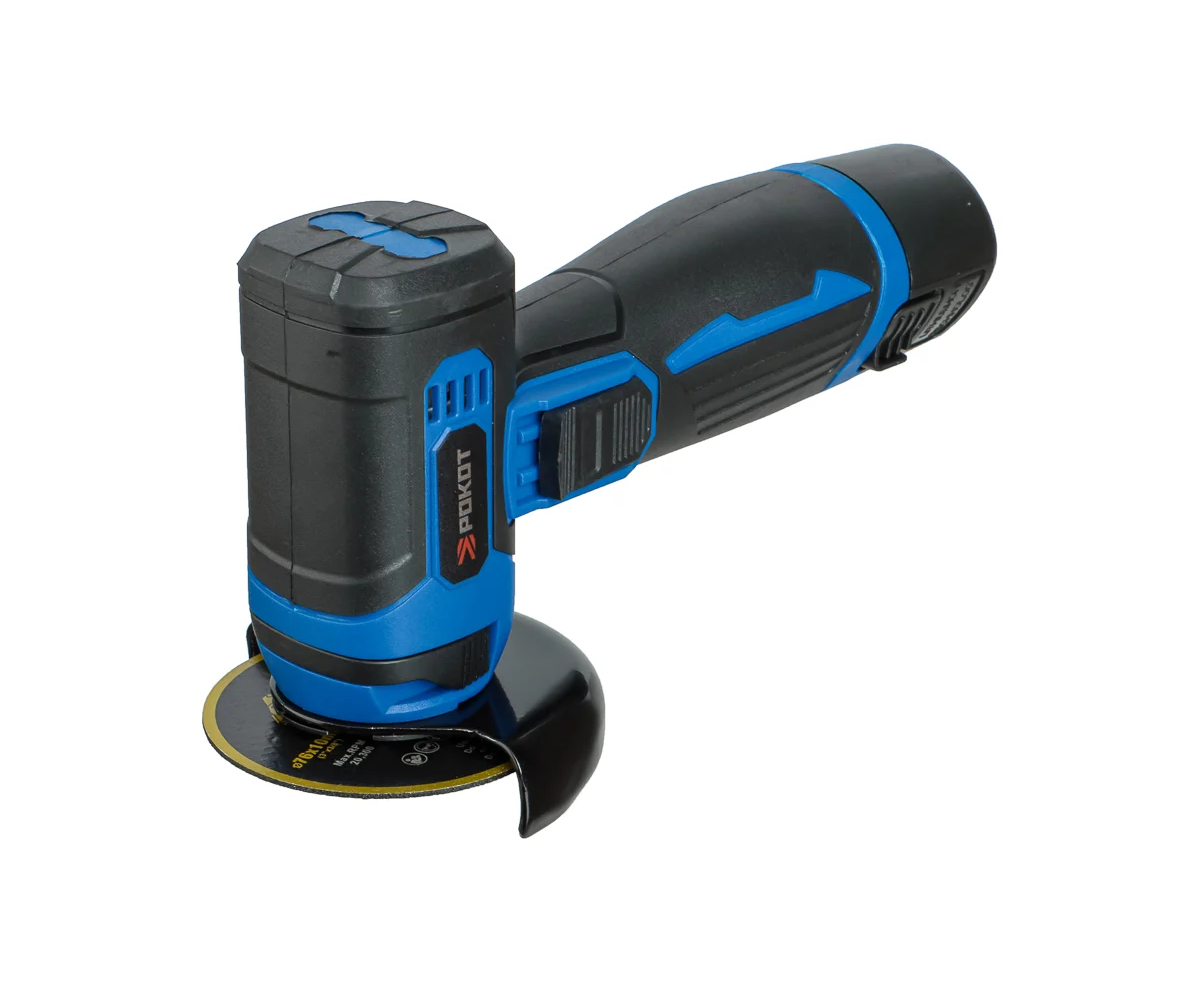 Угловая шлифовальная машина РОКОТ аккумуляторная мини, 12 В – это компактный электроинструмент, предназначенный для полировки, шлифовки, резки и других типов обработки различных поверхностей. Мощность – 450 Вт. Диаметр диска – 75 мм. Скорость вращения – 19500 об/мин. Инструмент надежный, производительный, абсолютно автономный, удобно лежит в руке и имеет невысокий вес. Защитный кожух предотвращает попадание мелких частиц в глаза, а также защищает руки от повреждений в случае отлома диска. Емкость аккумулятора 2.0 А*ч. Батарея быстро заряжается. В комплекте идет шестигранный ключ.