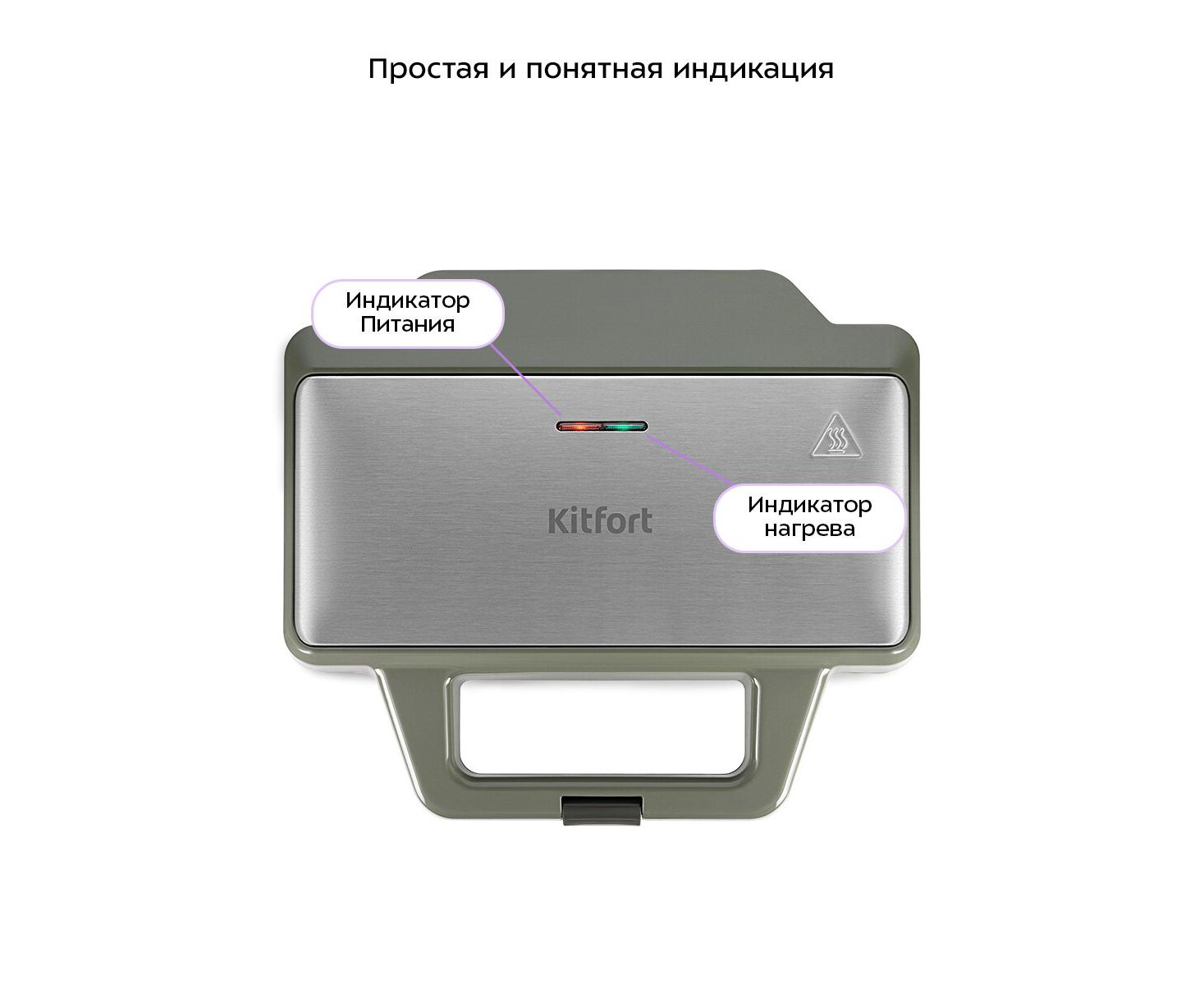 Вафельница оснащена индикаторами питания и нагрева. Индикатор питания горит, когда прибор включен в сеть. Индикатор нагрева горит, пока панели разогреваются. Когда панели достигли нужной температуры, индикатор гаснет.