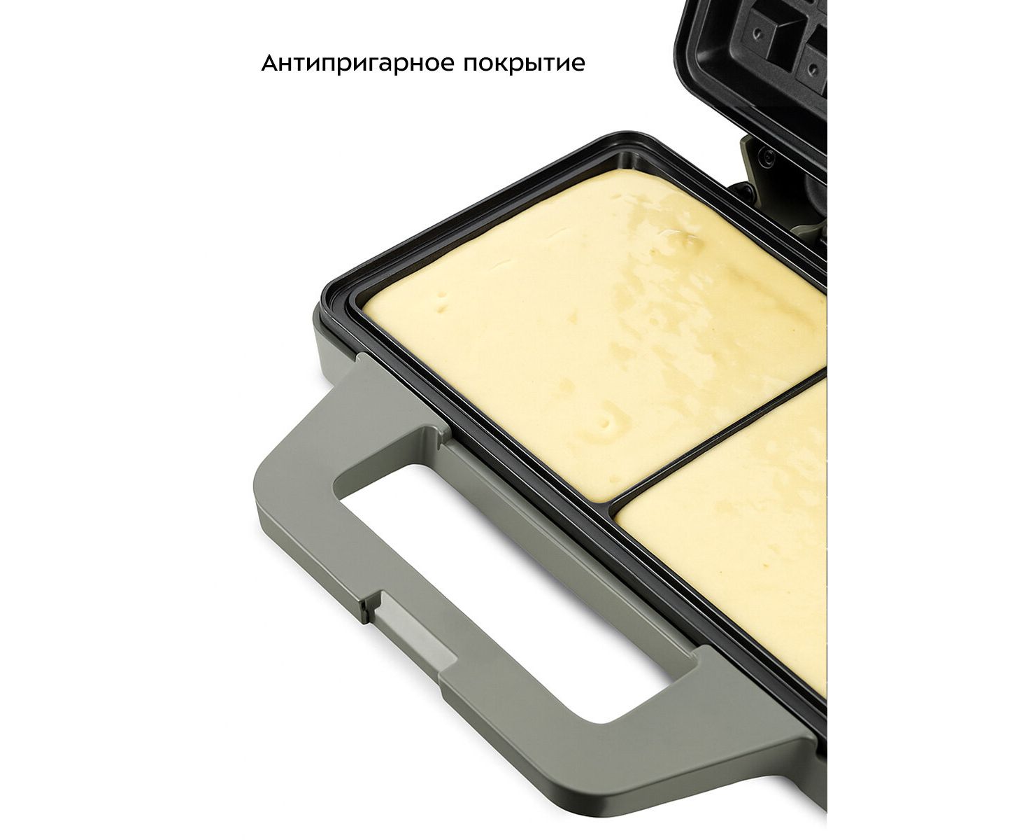 Антипригарное покрытие панелей вафельницы не дат прилипнуть тесту в процессе приготовления и позволяет готовить с минимальным количеством масла. Также антипригарное покрытие облегчает чистку панелей.