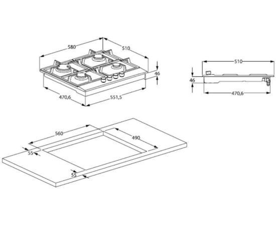 Цвет панели конфорок: черный