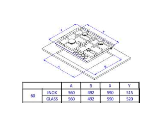 Мощность конфорок: 1*2,9/1*1,7/1*0,9 кВт