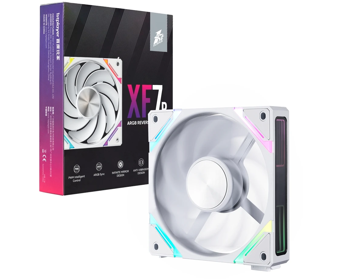 Вентилятор 1STPLAYER XF7R White ( XF7R-WH-1IN1) / 120mm Reverse ARGB 3pin 5V PWM 4pin 12V 600-2000rpm 56.8cfm 33.12dBA