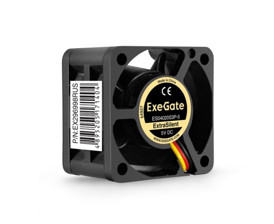 Вентилятор ExeGate ExtraSilent ES04020S3P-5 EX296998RUS 5В DC (40x40x20 мм, Sleeve bearing (подшипник скольжения), 3pin, 4800RMP, 21dBA)