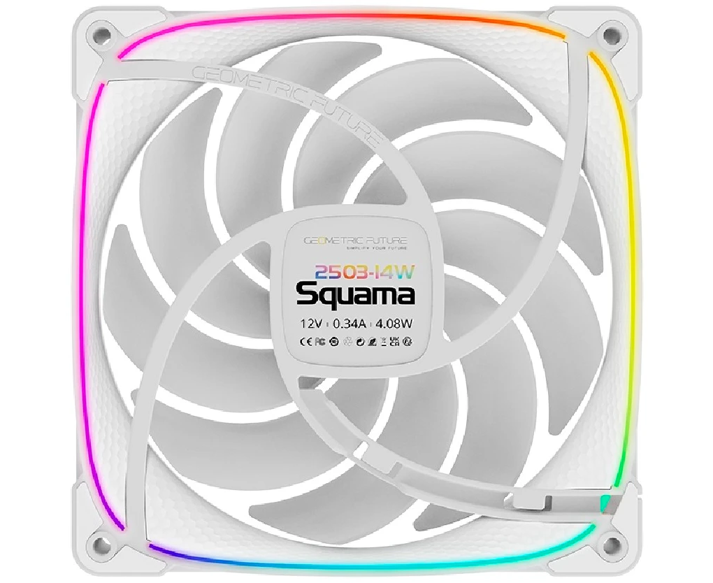 Вентилятор Geometric Future Squama 2503W-14 Single Pack (1F2503W114000) / 140mm, PWM, 2400 RPM, 91.15 CFM, 34.0 dBA, 5V ARGB, White