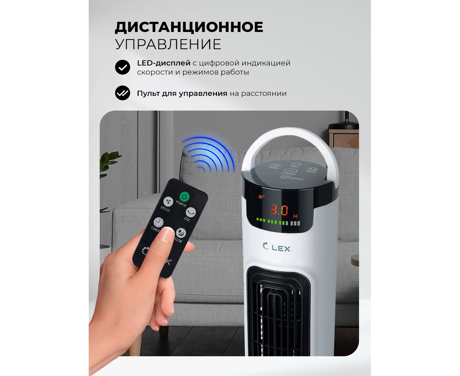 Вентилятор-колонна LEX LXFC 8366, 38" ПДУ, белый