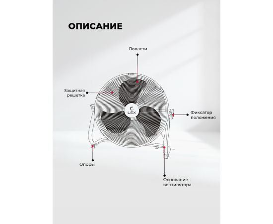 Вентилятор LEX LXFC 8383, 14" напольный стальной