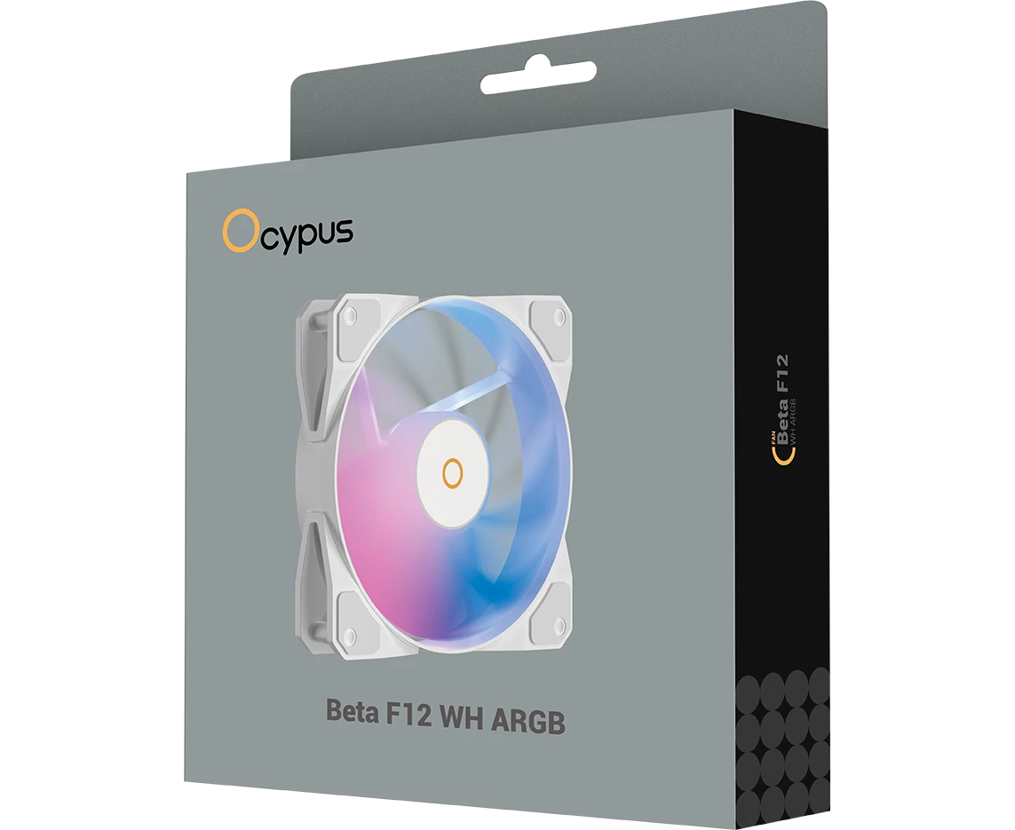 Вентилятор Ocypus Beta F12 WH ARGB, 120x120x25mm, 4-PIN PWM, 800-1600 RPM, 29 DBA MAX, Hydro Bearing