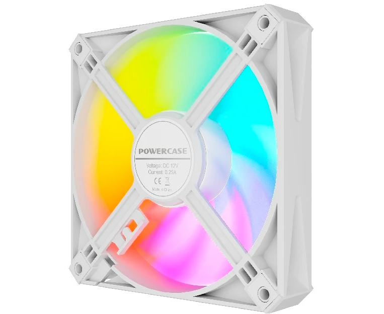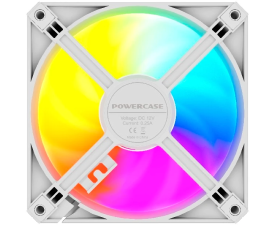Вентилятор Powercase (M56-12W ARGB) White 120x120x25мм (PWM, 4pin PWM (M+F)+ 3pin ARGB (M+F), 700-1500 об/мин) Bulk