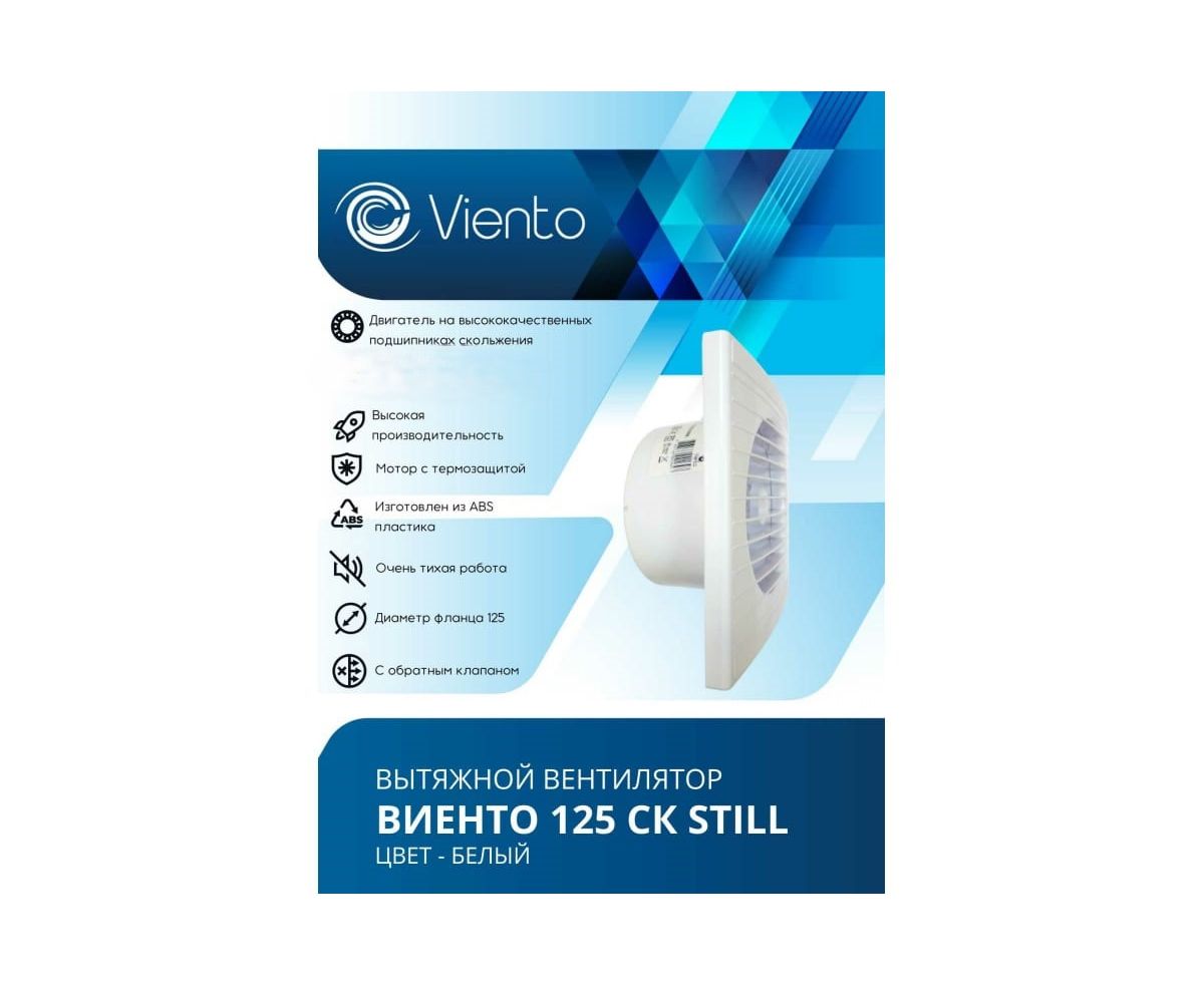 Вентилятор вытяжной ВИЕНТО 125СК Still (Виенто 125СК Still) осевой с обратным клапаном малошумный