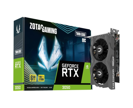 Видеокарта Zotac Nvidia GeForce RTX 3050 Twin Edge OC 6Gb (ZT-A30510H-10L) PCI-E 4.0 96bit GDDR6 1477/14000 HDMIx1 DPx3 HDCP Ret