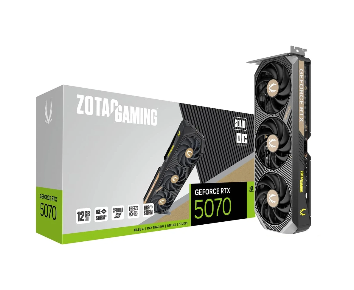Видеокарта Zotac Nvidia GeForce RTX 5070 Solid OC 12ГБ (ZT-B50700J-10P) GDDR7, Ret