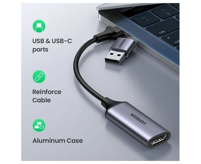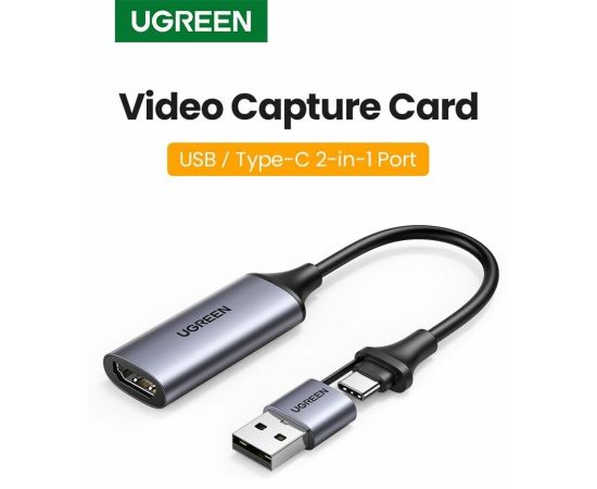 Видеозахват UGREEN CM489 40189 USB 1080P Video Capture Device Grey