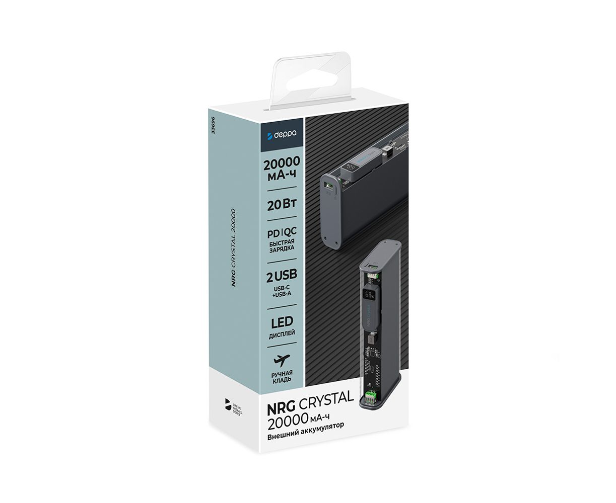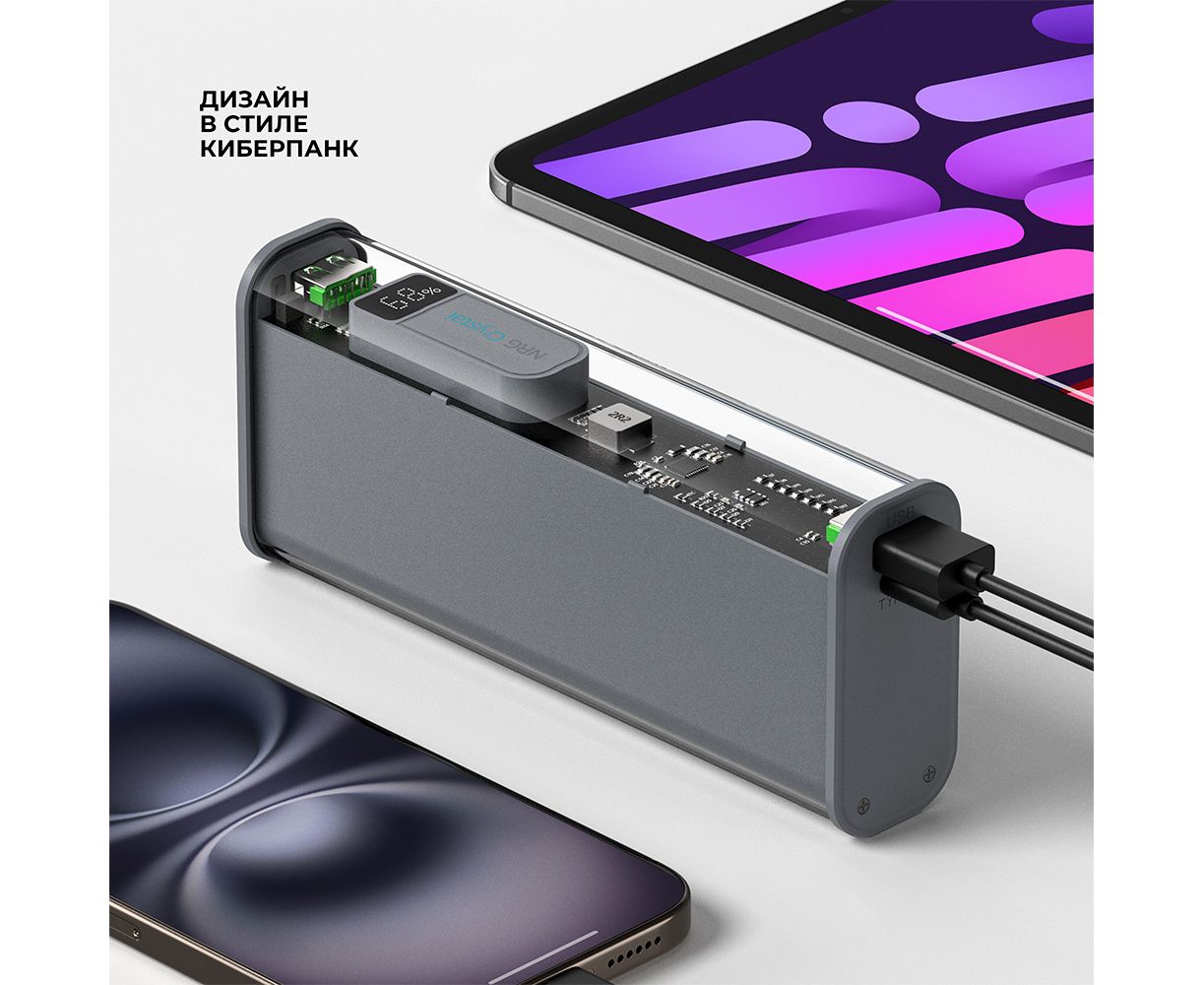 Внешний АКБ NRG Turbo TR 20000 мА-ч, 20Вт, дисплей, прозрачный