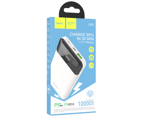 Внешний аккумулятор 10000mAh 1USB 3.0A PD20W+QC3.0 Hoco J102 (White)