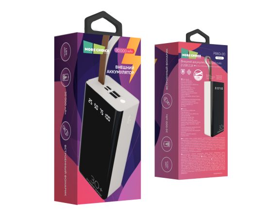 Внешний аккумулятор 30000mAh 2USB 2.1A More choice PB60-30 (White)