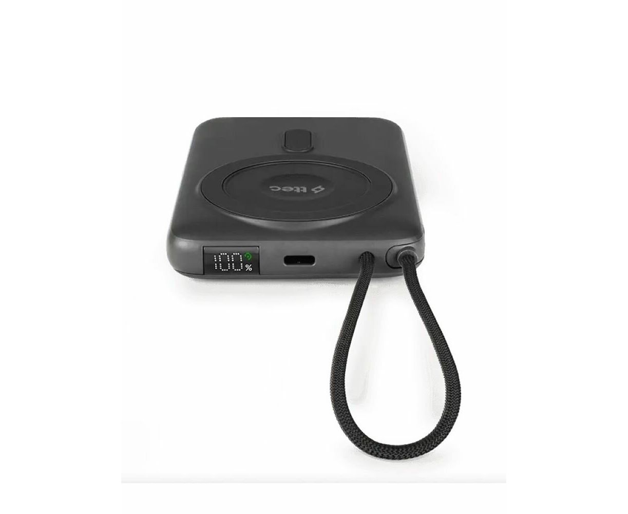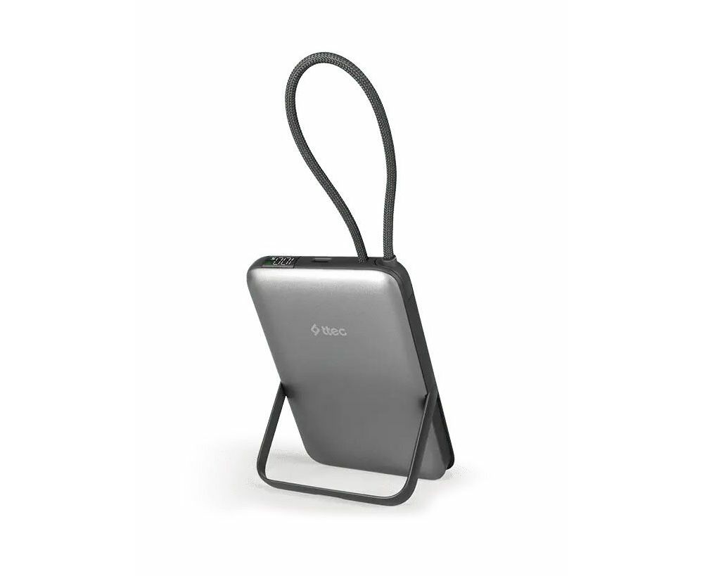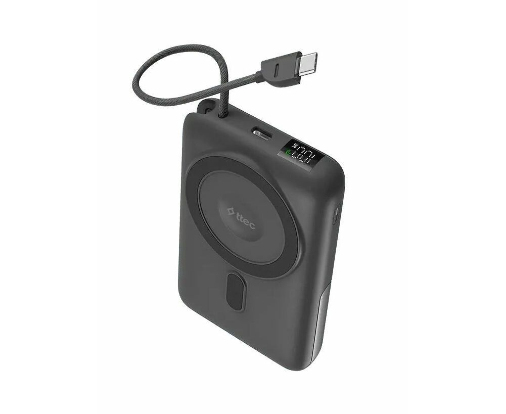 Внешний аккумулятор беспроводной TTEC 2BB230GR Recharger M LCD 10000 mAh. MagSafe PD 20W Powerbank с кабелем USB-C и подставкой серый