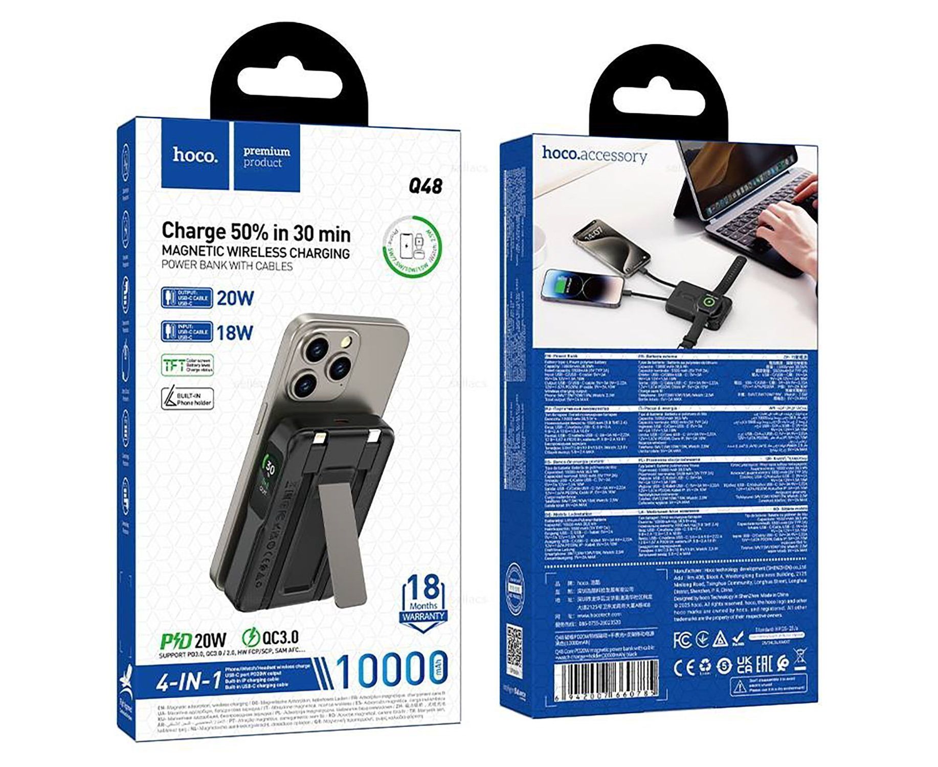 Внешний аккумулятор Hoco Q48 Core PD20W 10000mAh Type-C/Type-C/SafeMag (black)(240959)
