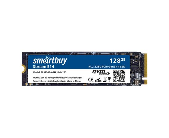 Внутренний SSD Smart Buy 128GB Stream E14, PCIe Gen3 x4, R/W - 1100/1800 MB/s, (M.2), 2280, TLC 3D NAND