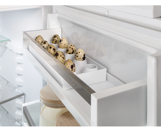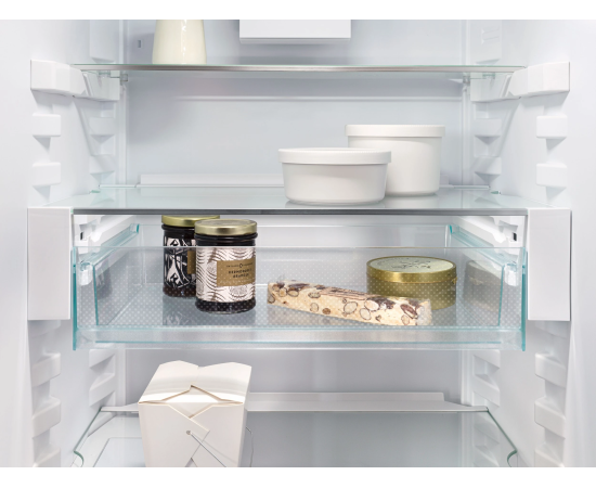 Открывая морозильное отделение, вы хотите видеть замороженные продукты, а никак не лёд или иней. NoFrost защищает морозильную камеру от нежелательного обледенения. Контейнер EasyFresh гарантирует свежесть продуктов в вашем доме, как на рынке. Неупакованные фрукты, овощи или плоды: здесь всё хранится оптимально. Благодаря плотному закрытию контейнера под воздействием продуктов в нём повышается влажность воздуха. Таким образом, продукты остаются свежими долгое время. Благодаря двум полностью раздельным контурам охлаждения DuoCooling обеспечивает отсутствие воздухообмена между холодильным и морозильным отделениями. Продукты питания не засыхают,а запах не передаётся. А это значит: меньше выбрасывать, реже ходить за покупками, больше экономить и получать удовольствие. Реальность прикосновения: сенсорный экран позволяет легко и интуитивно управлять вашим устройством Liebherr. Все функции наглядно расположены на экране. Легким касанием пальца вы можете легко выбрать функции или проверить текущую температуру холодильника.